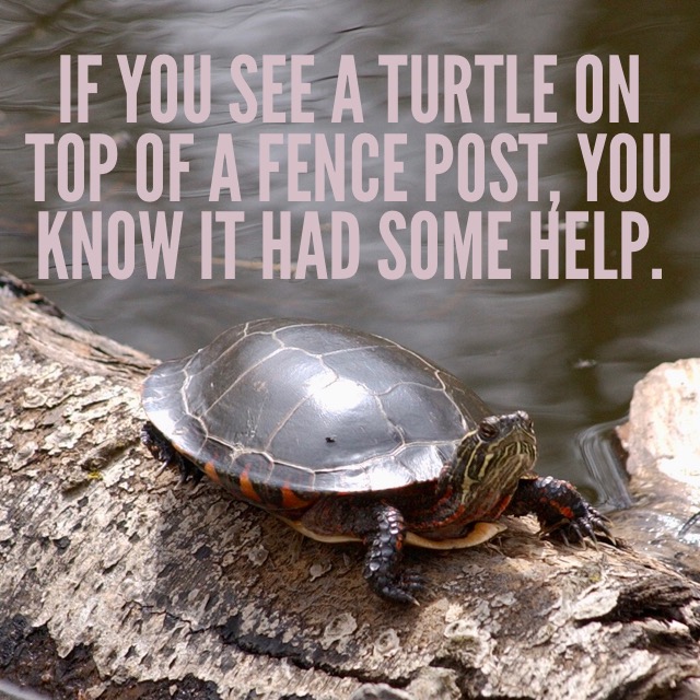 As I walked back home I thought about a quote I heard once, “If you see a turtle on top of a fence post, you know it had some help.”
