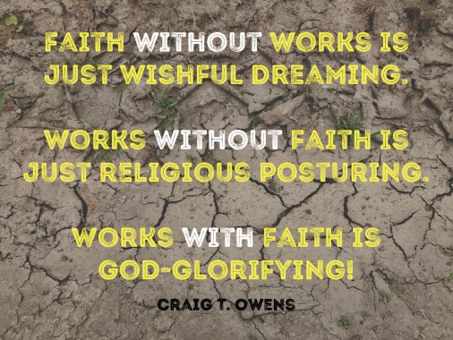 Faith without works is just wishful dreaming. Works without faith is just religious posturing. Works with faith is God-glorifying!