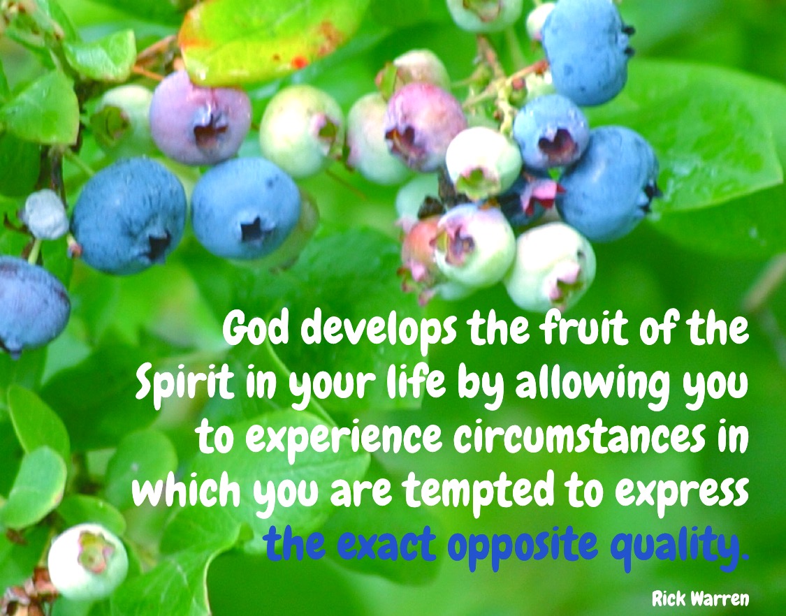 I’m challenged by this quote from Rick Warren: “God develops the fruit of the Spirit in your life by allowing you to experience circumstances in which you’re tempted to express the exact opposite quality!”