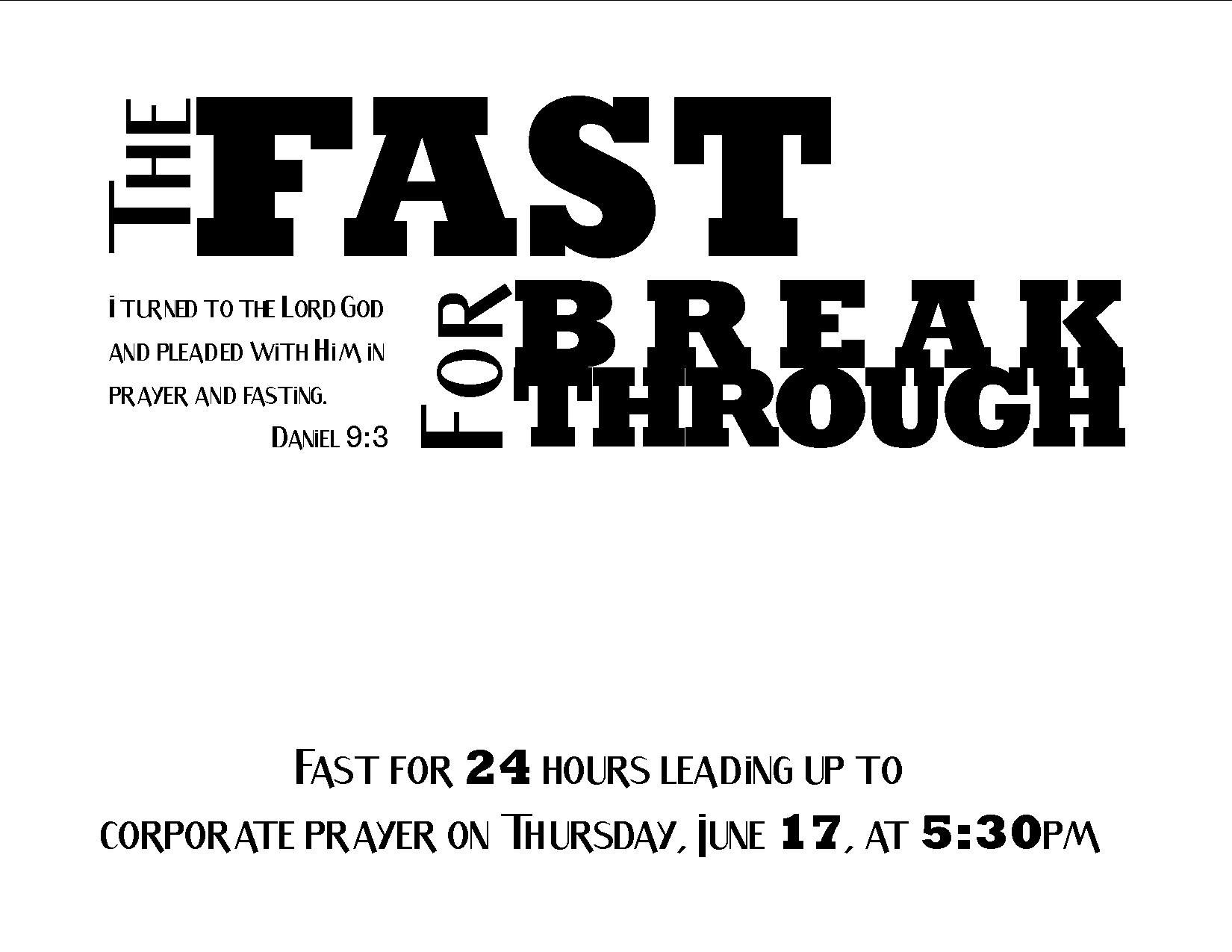 We met together for a time of worship and Bible study last night, and we’ll conclude our fast with corporate prayer this evening. We are focusing on our heart attitude. Not fasting just because or even the pastor asked us to. But fasting because we are hungry for God to move … for Him to break chains … for Him to set people free … for breakthroughs!