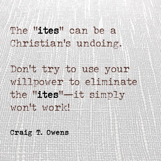 After awhile the ites have behaved themselves. They seem harmless enough. In fact, I’ve gotten so strong, so mature, in my Christian faith, I know I’ll never give in to the pull of the ites again. I can relax a little bit now.