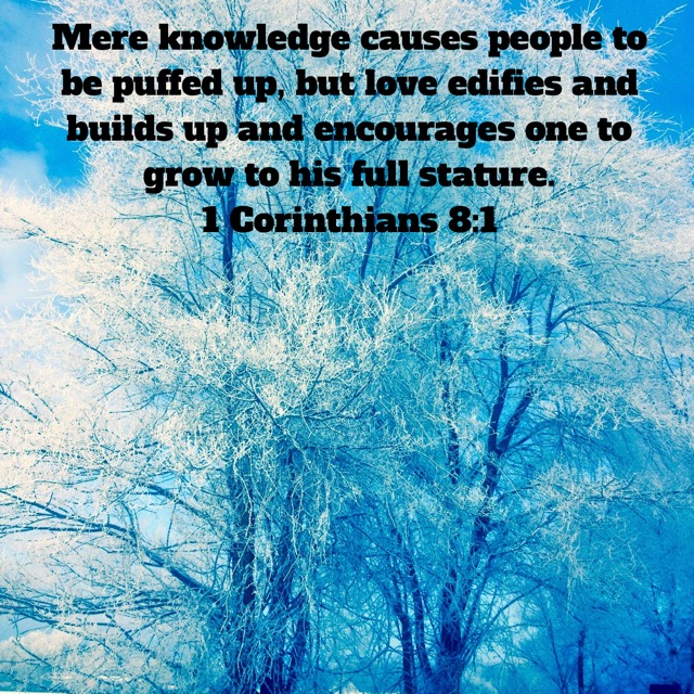 Love builds up. Knowledge only benefits me; love benefits all. The Amplified Bible says it this way, “love edifies and builds up and encourages one to grow to his full stature.”