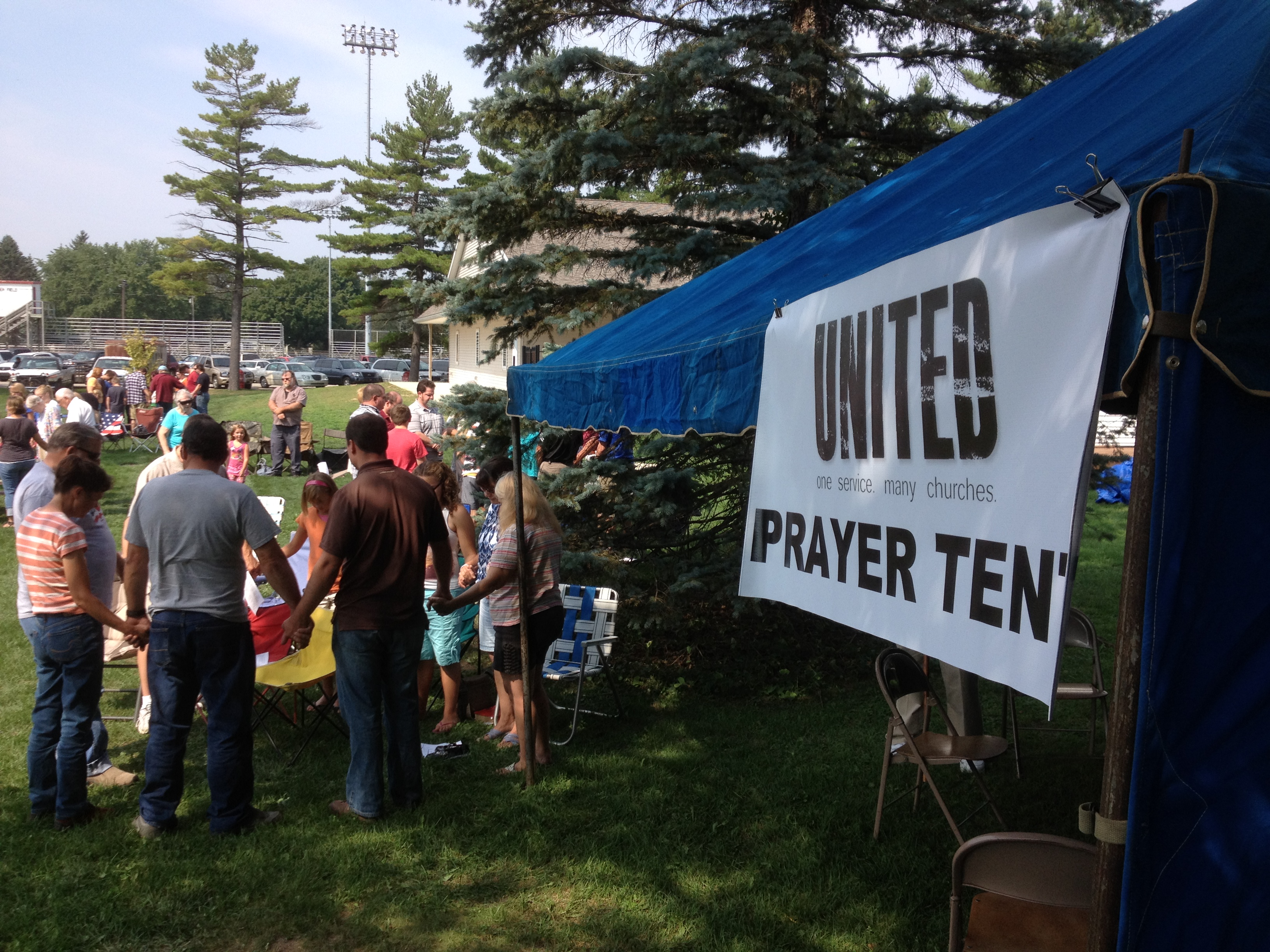 Here are a couple of photos I took this morning at the United service. As the service concluded, people formed prayer circles to prayer in unity. How amazing to see folks from different churches, different denominations, different backgrounds all united in prayer to the one true God!