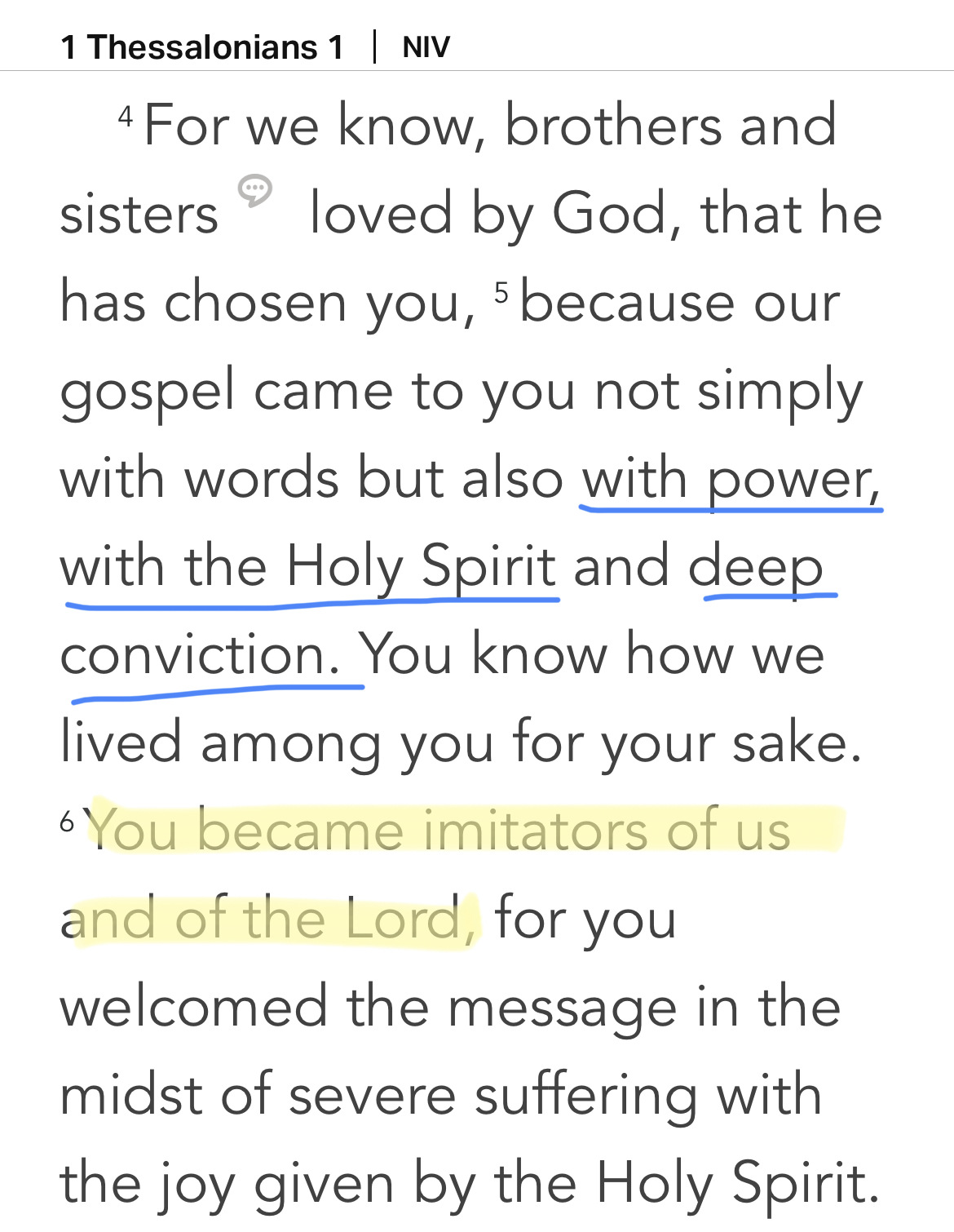 Our gospel came to you not simply with words, but also with power, with the Holy Spirit and with deep conviction…. (1 Thessalonians 1:5)