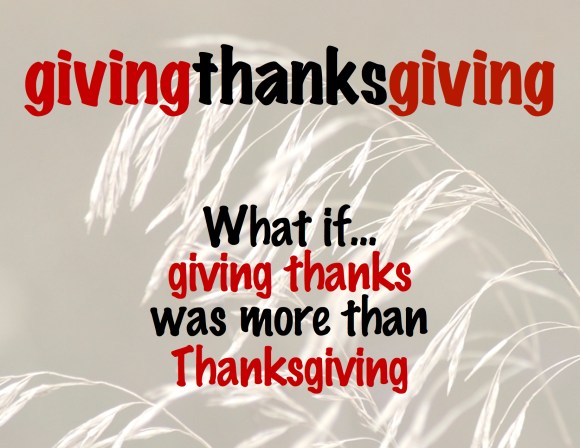 […] this lifestyle that prompted me to coin the word givingthanksgiving. Giving thanks shouldn’t just be on Thanksgiving Day. It should be a regular activity. And if it […]