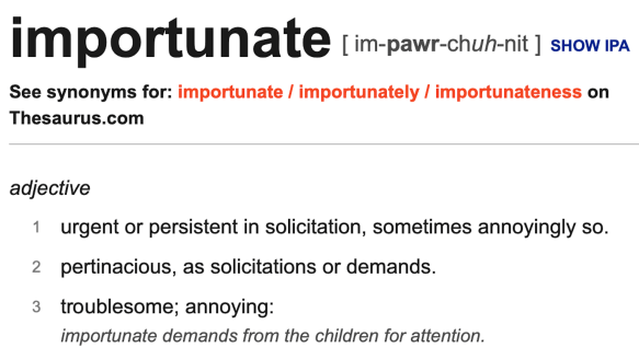 Importunity is not a word that pops up in everyday conversation, but the concept permeates Scripture. Check out these words from Jesus—