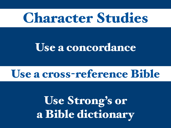 When you come across someone’s name in your systematic reading, use a concordance to find all the other places they may be mentioned. You may also want to look up their name in a Bible dictionary, or Strong’s Concordance to find out about their ancestors or meaning of their name.
