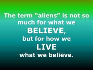 You only need to take a look at our schools, our government, or our entertainment to see how “alien” biblical values are with current cultural trends. I think all of us have experienced that when we try to live by a biblical standard, people roll their eyes at us (at best) or maybe outright mock us. Perhaps the term “aliens” is not so much for what we say we believe, but how we live what we believe.