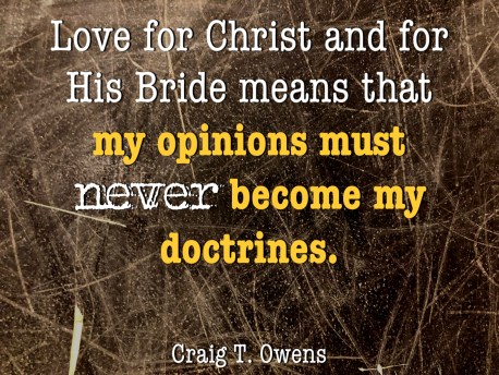 But love for Christ and for His Bride means that my opinions must never become my doctrines.