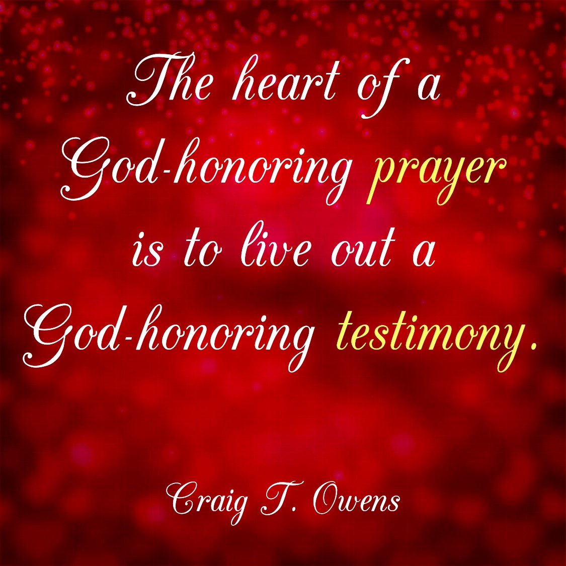 Let me say it again: The heart of a God-honoring prayer is to live out a God-honoring testimony.