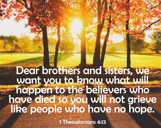 Our family loves the promise in 1 Thessalonians: And now, dear brothers and sisters, we want you to know what will happen to the believers who have died so you will not grieve like people who have no hope (1 Thessalonians 4:13). We grieve because we will miss her, but we have such an unshakable hope of her eternal home! Paul goes on to tell us that we should “encourage each other with these words” (v. 18).