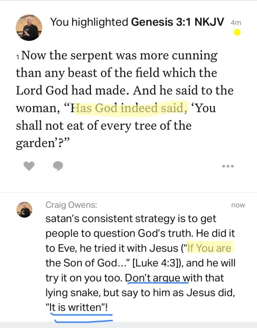 A consistent strategy of the devil is try to get us second-guessing or doubting God’s promises. He did this to Eve—“Did God really say that?”—and he tried it with Jesus—“Are You really the Son of God?”—and he’s still trying it today.