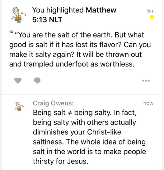 As long as my thoughts, attitudes, and actions remain Christlike, I should keep on seasoning and shining in dark places so that I can draw others to Jesus. “Do everything without complaining and arguing, so that no one can criticize you. Live clean, innocent lives as children of God, shining like bright lights in a world full of crooked and perverse people” (Philippians 2:14-15 NLT).