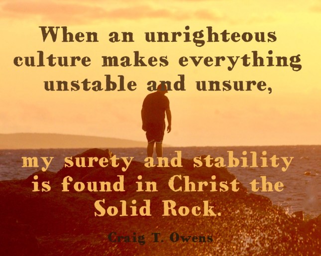When our culture is becoming increasingly unrighteous, unstable, and unsure, what an unshakable surety and security we have standing on Christ the Solid Rock. As the old hymn reminds us—when all around my soul gives way, He then is all my hope and stay!