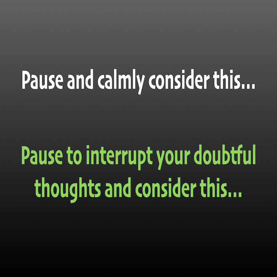 We’ve said that one of the definitions for Selah is “pause and calmly think of that,” but for Habakkuk’s Selahs I want to modify it slightly: Pause to interrupt your doubtful thoughts and consider this…. What he wants us to consider, I believe, comes from the opening words of his song in chapter 3—