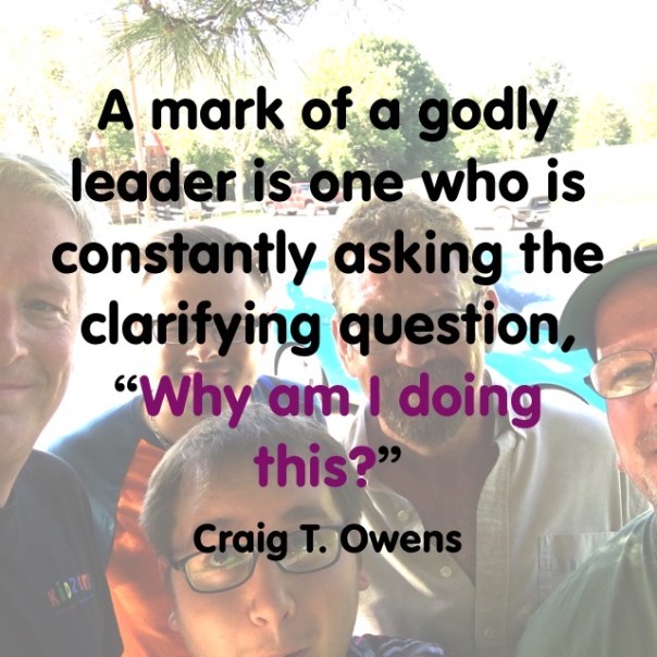 A mark of a godly leader is one who is regularly asking the question, “Why am I doing this?” and then continually drilling down to a solid “so that” reason.