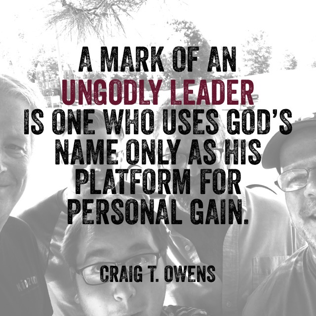 A mark of an ungodly leader is one who uses God’s name only as his platform for personal gain.