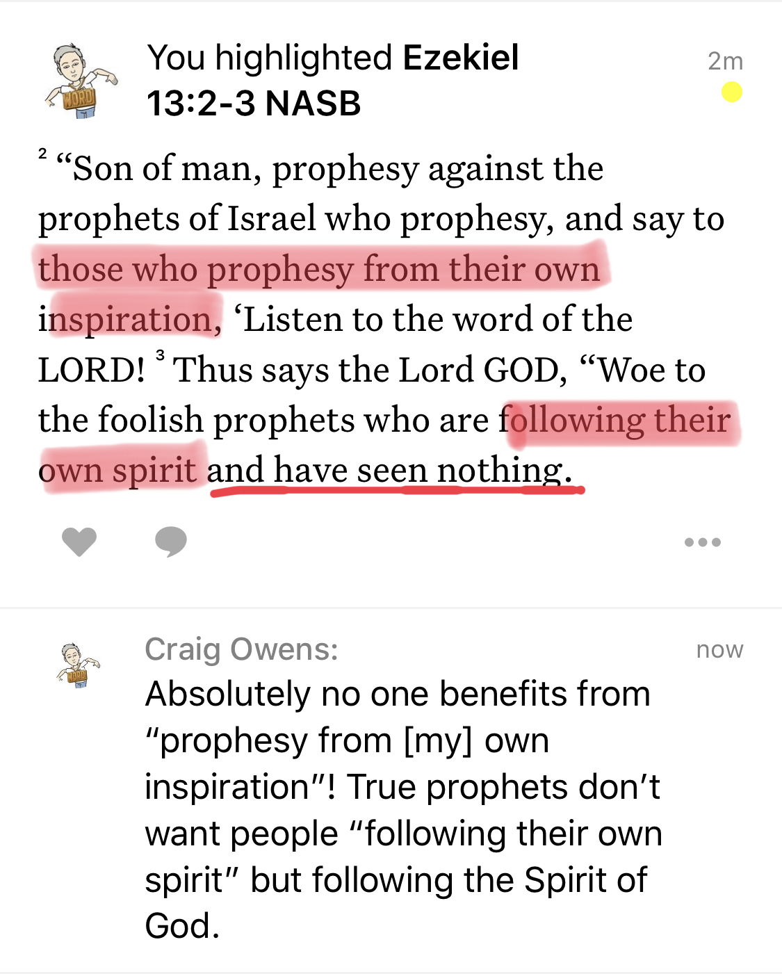 Absolutely no one benefits from a prophecy from my own inspiration. True prophets of God don’t want people following their own spirit but following the Spirit of God.