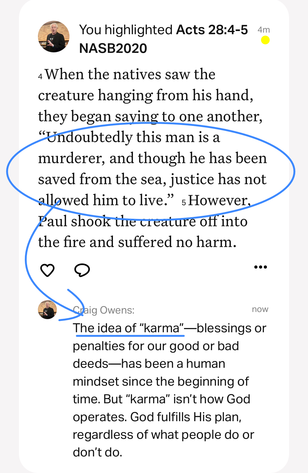 The residents of Malta thought the apostle Paul was experiencing karma.