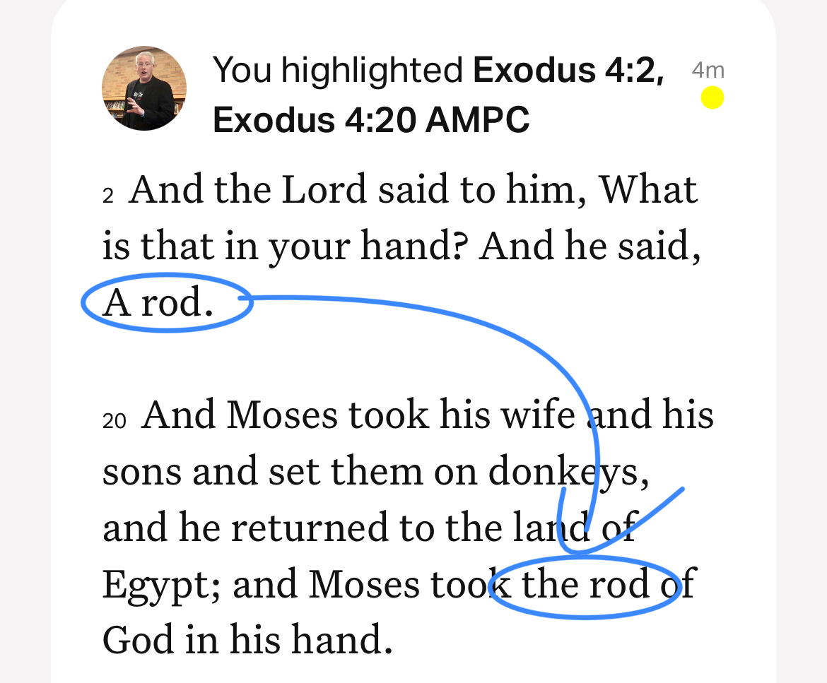 What Moses originally called merely “a rod” he later called “the rod of God.” He recognized that what he thought was his was in actuality what God had given him to use.