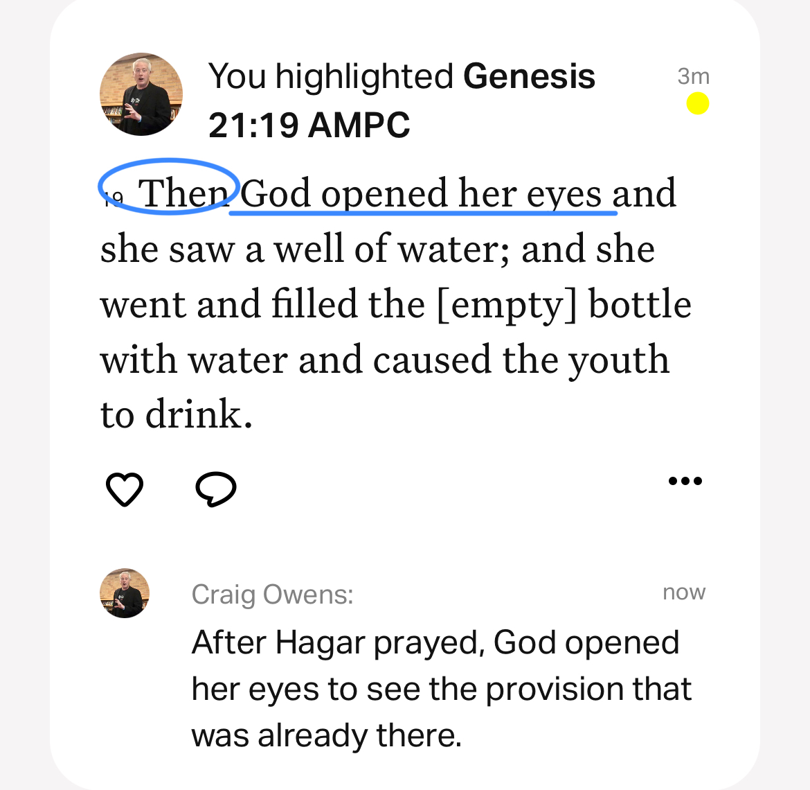 After Hagar prayed, God opened her eyes to see the provision that was already there.