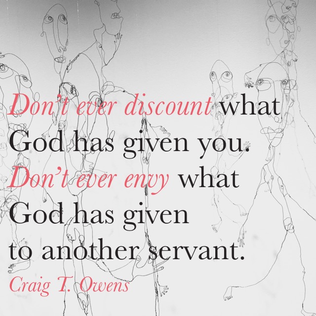 In other words, God gives us our talents or gifts on purpose. He knows exactly what gift to give us and in what proportion to be an effective steward for Him. Don’t ever discount what God has given you, and don’t ever envy what He has given to another servant. What you consider “a little” is still enough to accomplish the purpose God has for your life.