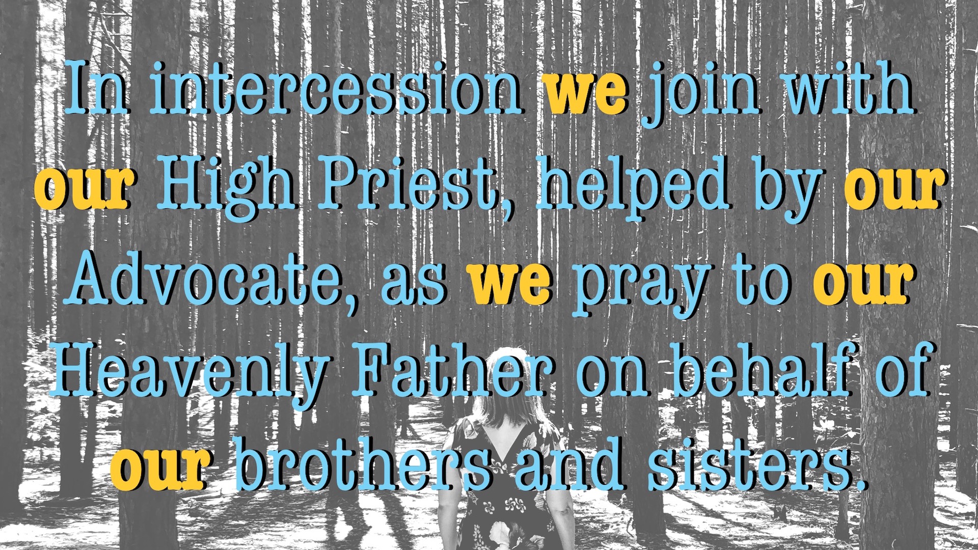 We join with our High Priest, helped by our Advocate, as we pray to our Heavenly Father on behalf of our brothers and sisters.