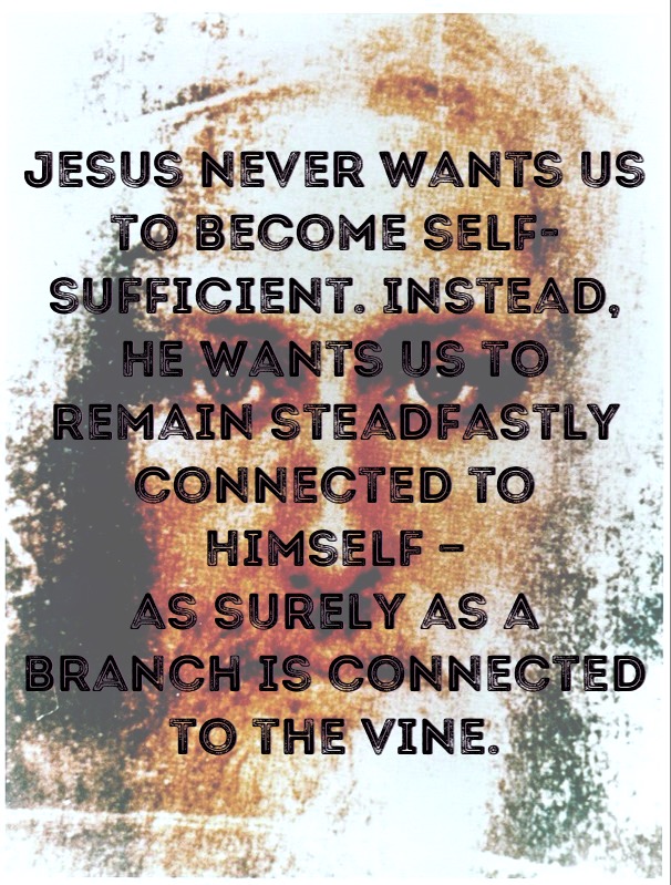 Jesus never wants us to become self-sufficient. Instead, He wants us to remain steadfastly connected to Himself—as surely as a branch is connected to the vine.