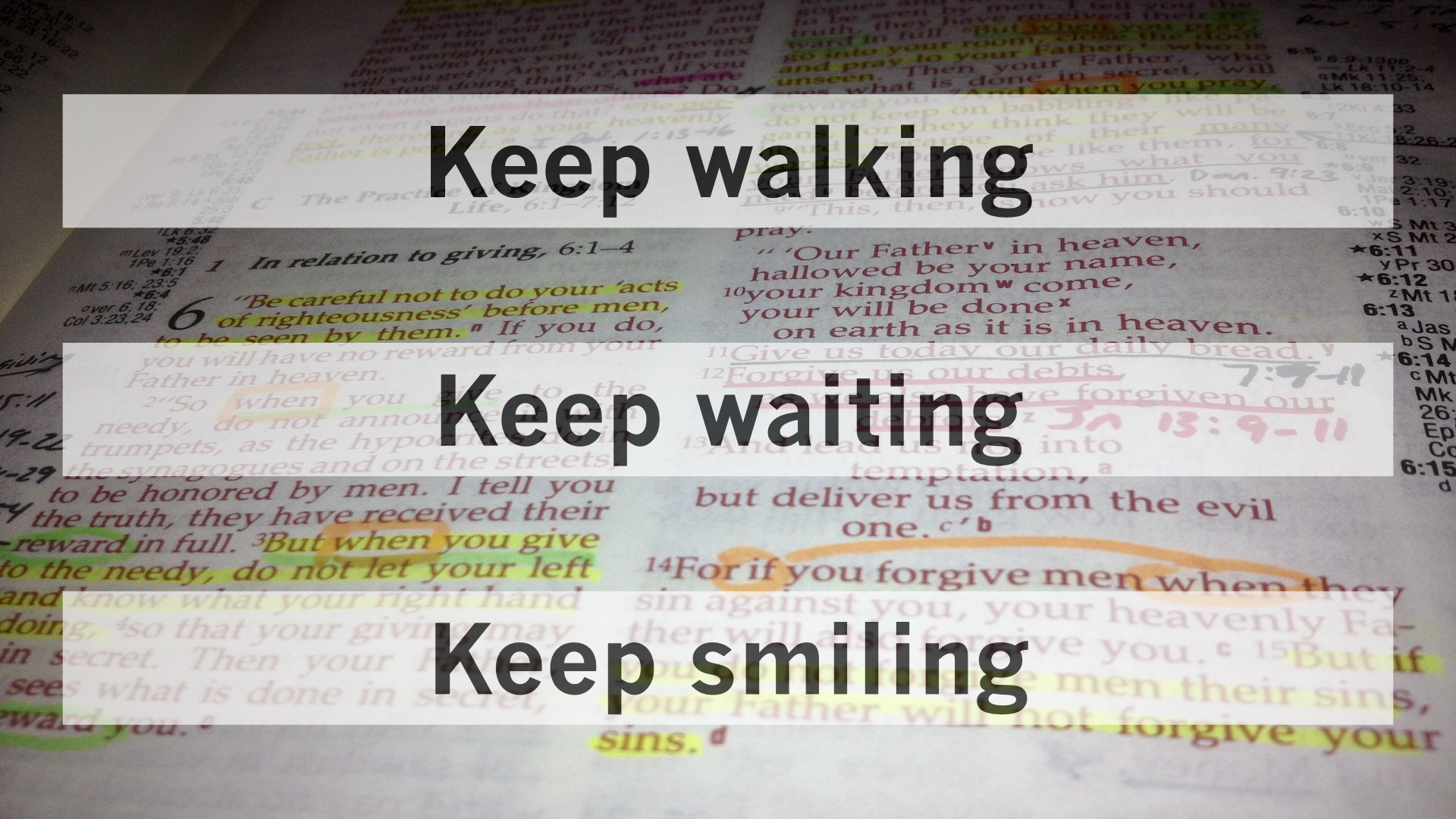 Pray—then keep walking, keep waiting, and keep smiling in anticipation of what your Heavenly Father is doing on your behalf.