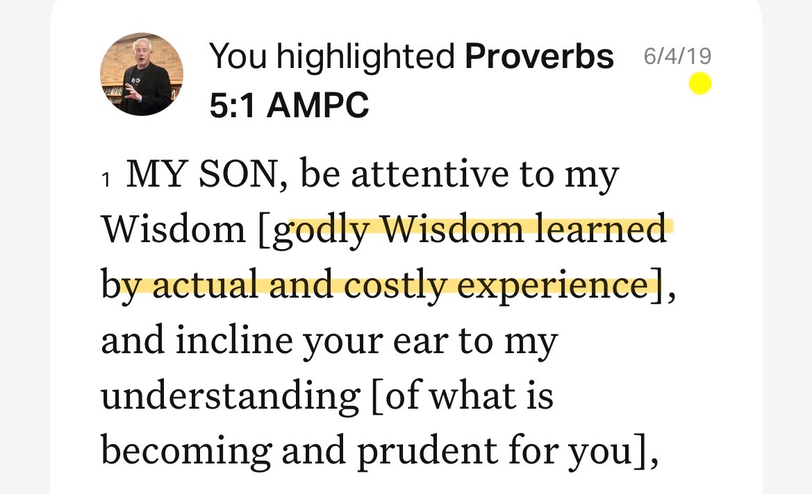 My son, be attentive to my Wisdom—godly Wisdom learned by actual and costly experience—and incline your ear to my understanding of what is becoming and prudent for you. (Proverbs 5:1)