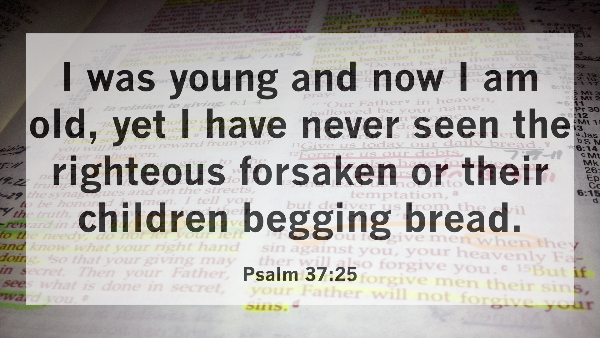 I was young and now I am old, yet I have never seen the righteous forsaken or their children begging bread. (Psalm 37:25)