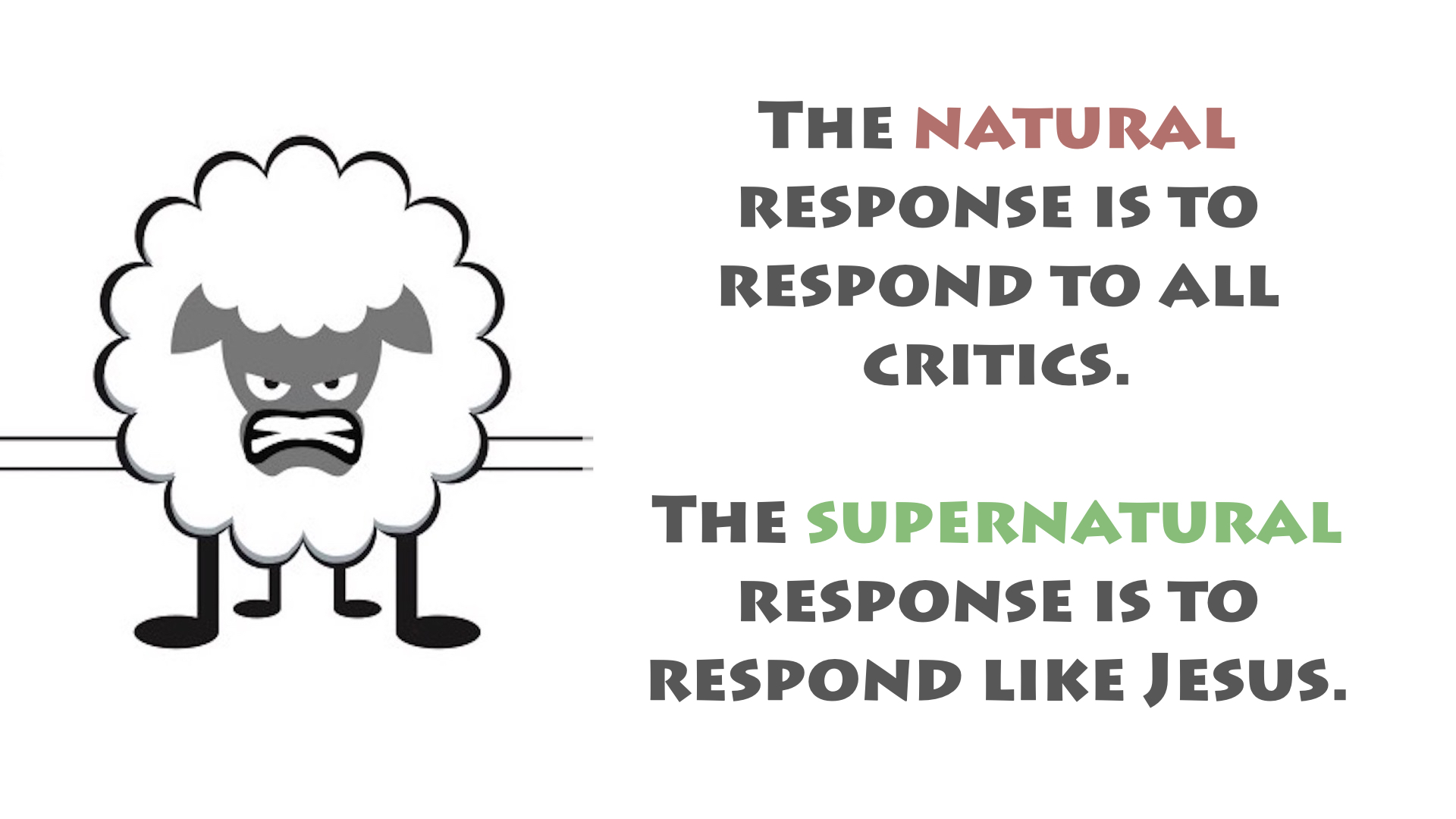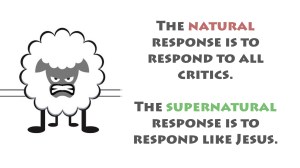 The natural response is to respond all critics. The supernatural response is to respond like Jesus (see 1 Peter 2:21-23).