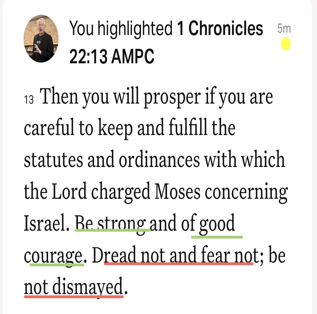 Then you will prosper IF you are careful to keep and fulfill the statutes and ordinances with which the Lord charged Moses concerning Israel. Be strong and of good courage. Dread not and fear not; be not dismayed. (1 Chronicles 22:13 AMPC)