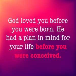 God loved you before you were born. He had a plan in mind for your life before you were conceived.