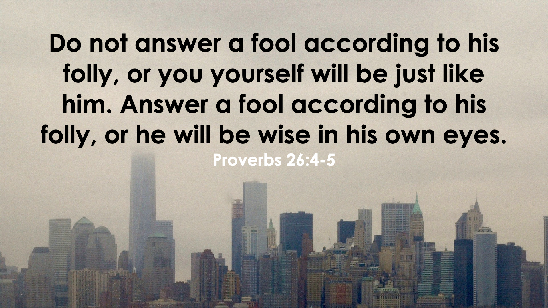 King Solomon pointed out the difficulty of this in Proverbs 26:4-5. Do we answer a fool or not? Yes, but we answer wisely not foolishly.