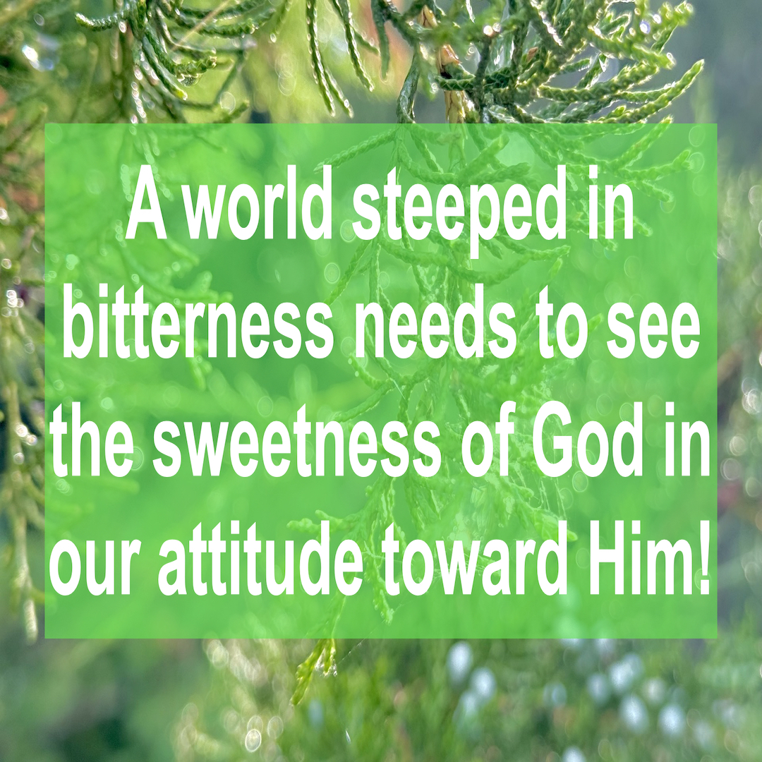 A world steeped in bitterness needs to see the sweetness of our God—Come and see what God has done, His awesome deeds for mankind! (Psalm 66:5).