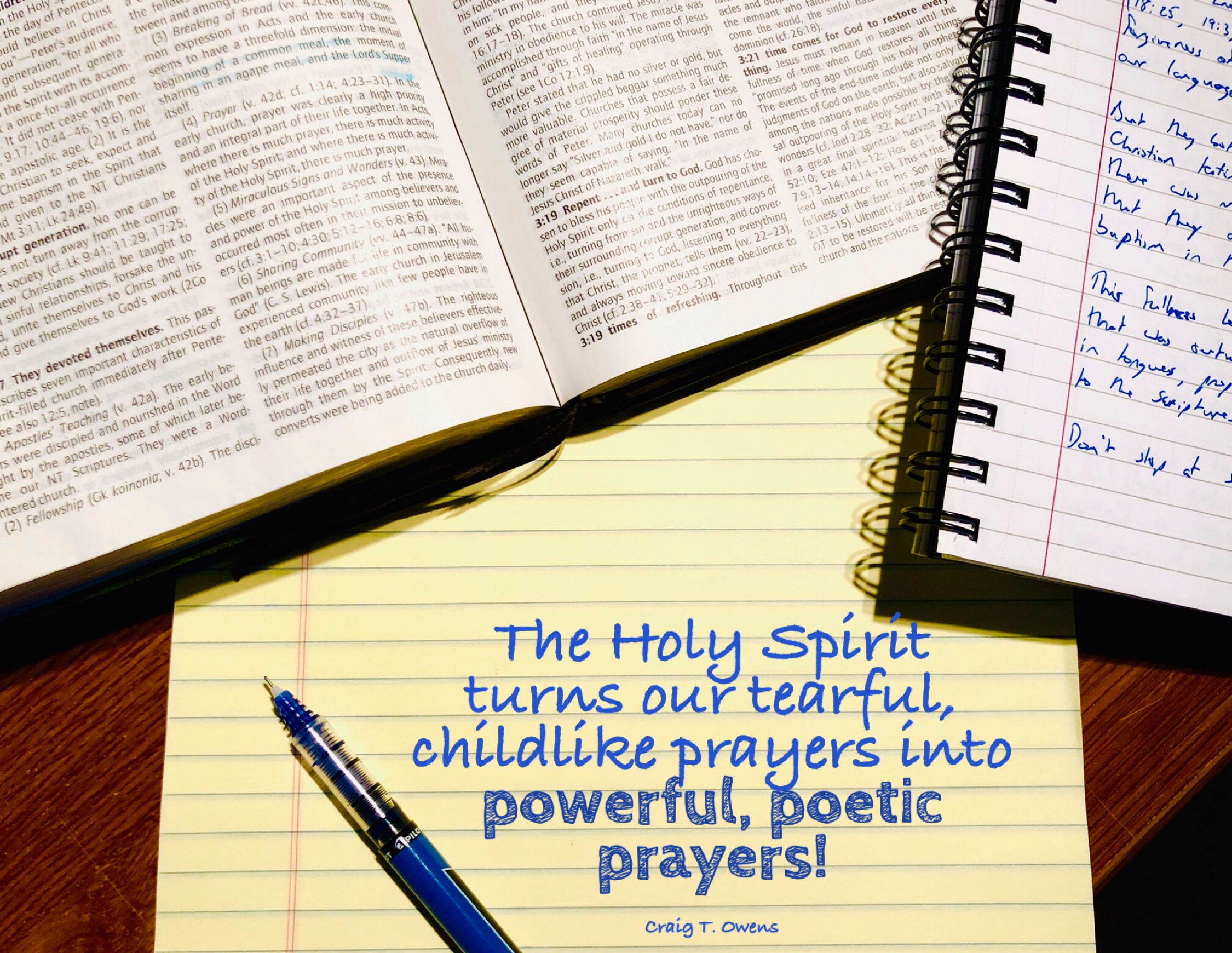 Finally, Jesus was never at a loss of what prayer to pray, and so too will the Holy Spirit help us go deeper into our prayer time (Luke 10:21; Romans 8:26-27; Ephesians 3:14-21).