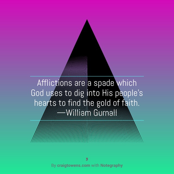 “Afflictions are a spade which God uses to dig into His people’s hearts to find the gold of faith.” —William Gurnall