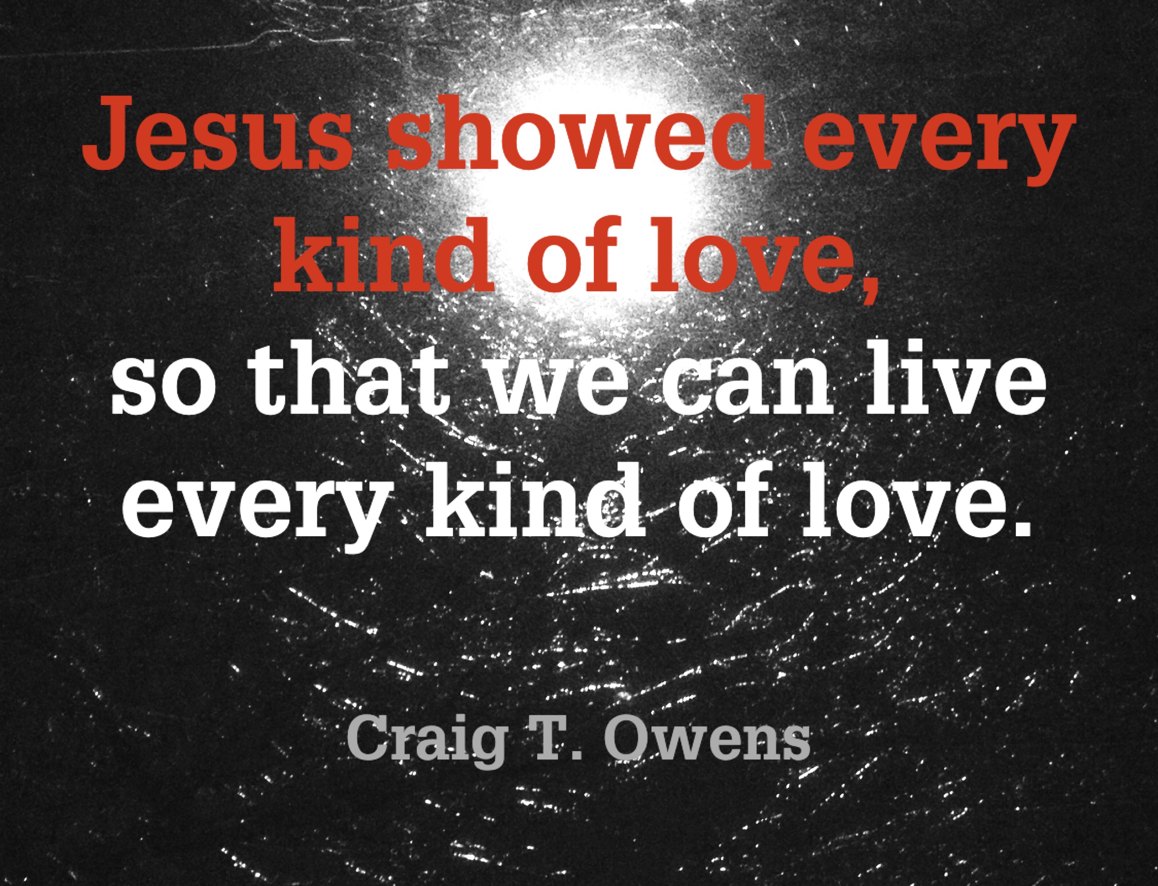 Jesus showed every kind of love so that we can live every kind of love! As we live as love-filled people, we show others the path to Christ’s love for their own love-starved hearts.