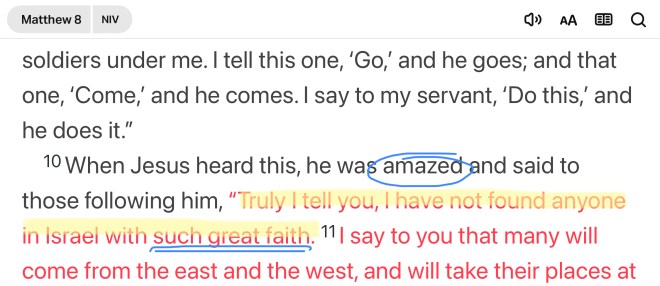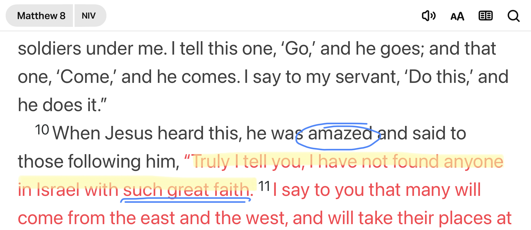 But there are two instances where Jesus Himself is amazed, where the Bible says He marveled at what someone said.