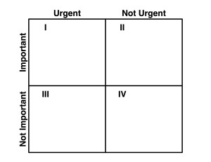 Stephen Covey has a great diagram that helps us identify four important quadrants in our life: