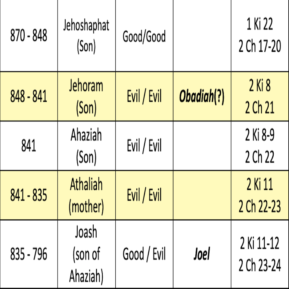Ahaziah his son then sits on the throne in Jerusalem for only a year, manipulated by his mother Athaliah. “He walked in the ways of the house of Ahab and did evil in the sight of the Lord, as did the house of Ahab, for his father was son-in-law of Ahab” (2 Kings 8:27). This alliance led to another disastrous joint military campaign with Israel. Ahaziah was killed by Jehu shortly after this.