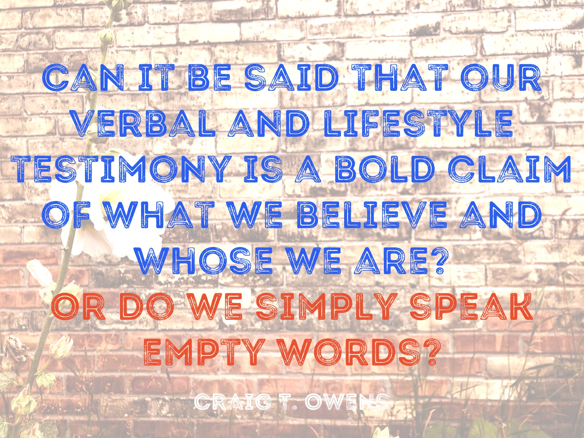So let me repeat the question: Can it be said that our verbal and lifestyle testimony is a bold claim of what we believe and Whose we are? Or do we simply speak empty words?