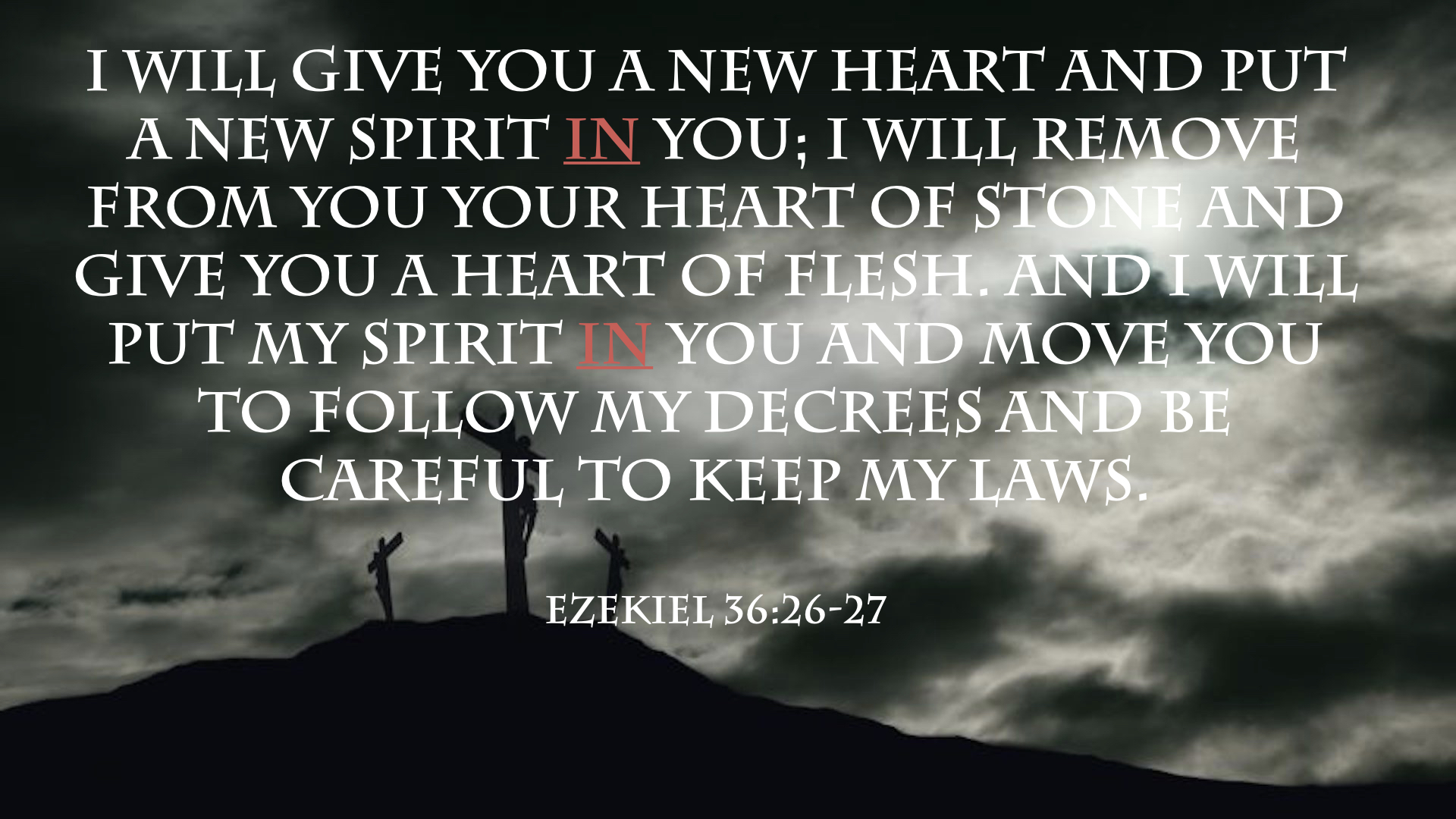 I will give you a new heart and put a new spirit in you; I will remove from you your heart of stone and give you a heart of flesh. And I will put My Spirit in you and move you to follow My decrees and be careful to keep My laws. (Ezekiel 36:26-27)