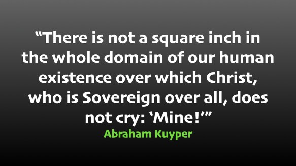 Most ofus would probably agree with Abraham Kuyper who said, “There is not a square inch in the whole domain of our human existence over which Christ, who is Sovereign over all, does not cry: ‘Mine!’”