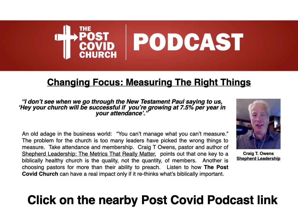 The contact information will be in the transcript of this podcast. Just go to the website, www.thepostcovidchurch.com, click on the title, Changing Focus Measuring the Right Things. There it is. Thank you, Craig, for joining me today.