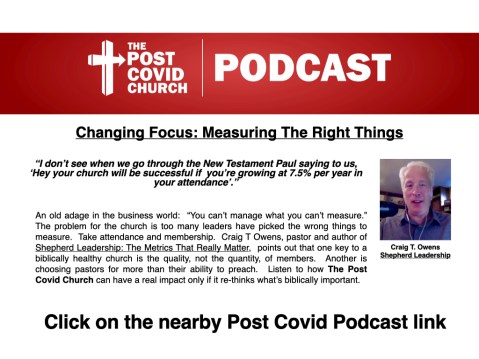Thank you for joining us. You know, since The Post Covid Church project is all about helping churches…our mission statement is Helping the church share more of the good news in the face of hostility, persecution and disinterest….Well, that can’t be done unless we spend a lot of time talking about leadership. Today, you’ll hear from a leader who’s focusing on helping churches to quit focusing on numbers, and start focusing on what matters.