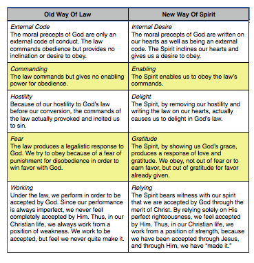 “Do you view God’s moral precepts as a source of bondage and condemnation for failure to obey them, or do you sense the Spirit producing within you an inclination and desire to obey out of gratitude and love? Do you try to obey by your own sheer will and determination, or do you rely on the Spirit daily for His power to enable you to obey? Do you view God as an ogre who has set before you an impossible code of conduct you cannot keep, or do you view Him as your divine Heavenly Father who has accepted you and loves you on the basis of the merit of Christ? In other words, in terms of your acceptance with God, are you willing to rely solely on the finished perfect work of Jesus, instead of your own pitifully imperfect performance?”