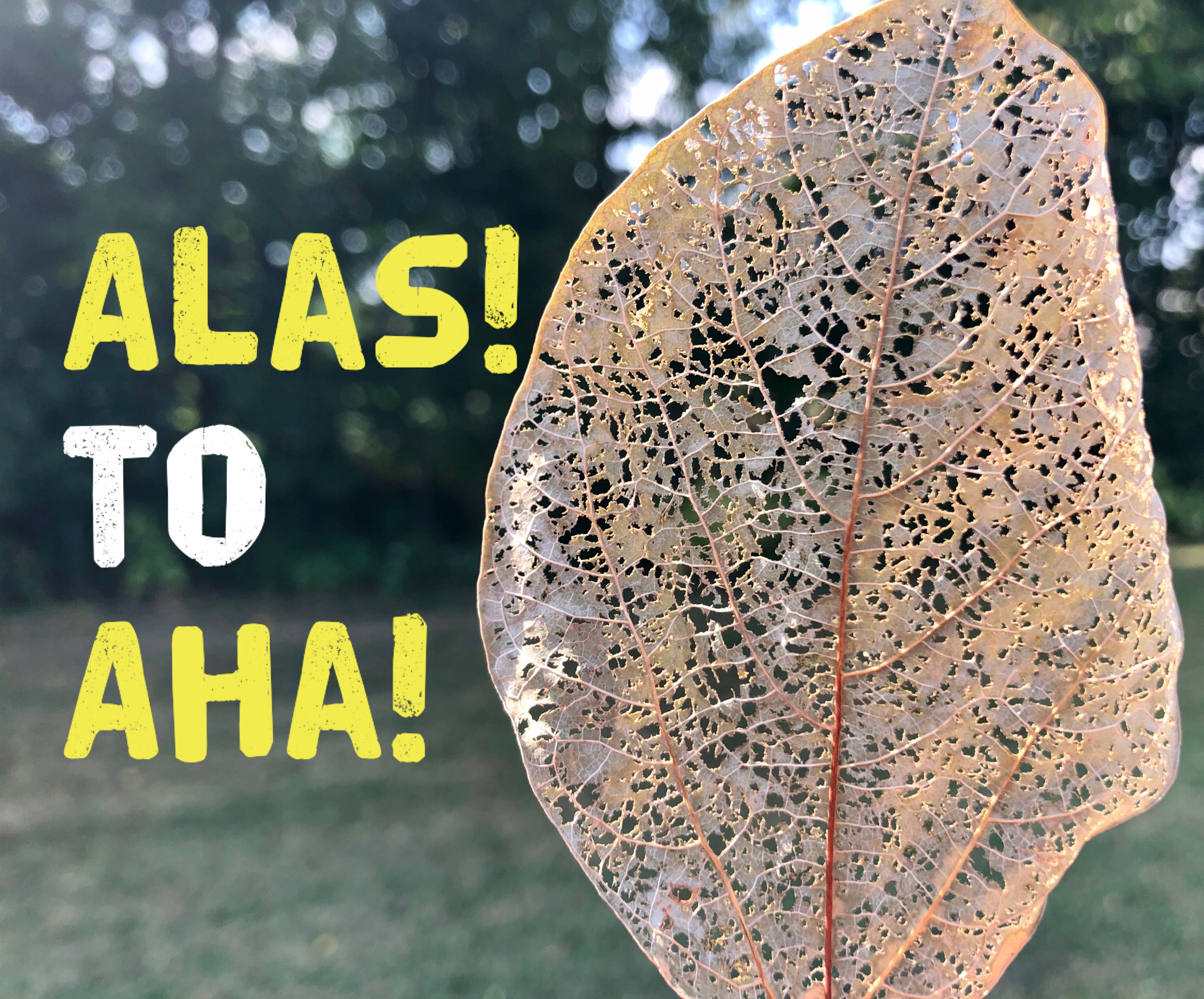 Don’t despair in the ALAS! times, but cry it out loud to the only One who can help you, and then watch to see how He alone will turn your situation into a defining, God-glorifying AHA! testimony.