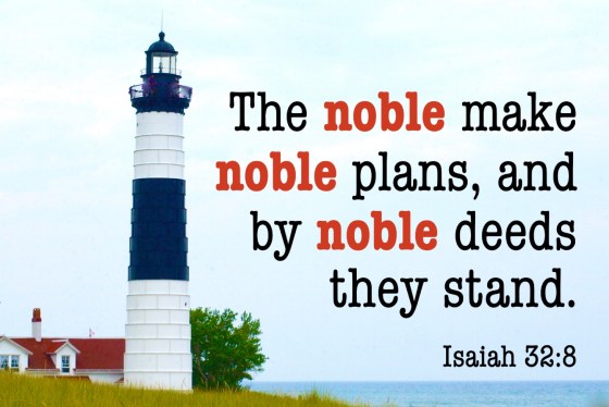 With all of this treasure accessible to me, how do I now live? In a word: Nobly. “But the noble make noble plans, and by noble deeds they stand” (Isaiah 32:8). I am a child of God, a joint-heir with Jesus. I lack no good thing, so I can live securely, gracefully, and nobly. I must live this way to bring glory to my Lord and my Master every single day!